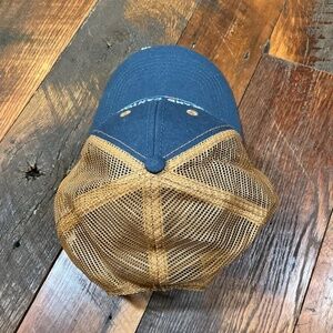 The color is: Blue front with multicolor embroidered Grand Canyon graphic, tan mesh back