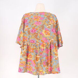 NWT RUSTTYDUSTTY Pink Multicolor Floral Short Sleeve Top Viscose Size 4XL