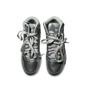 Metallic synthetic leather upper made with at least 50% recycled materials