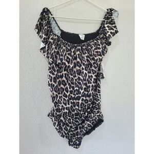 Swim Solutions Off Shoulder Leopard Print Ruffle Swimsuit Black Multi 22W #18