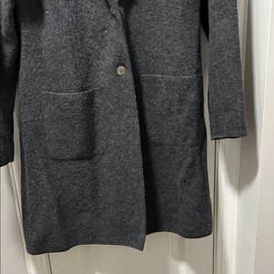 Elevate your wardrobe with this frame & white 100% wool sweater coat very very soft good condition pockets in the front four buttons lightweight Ptp 20 X 26 length charcoal blazer. Perfect for a polished look, it features a sleek design with front pockets.