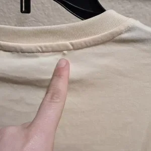 small flaw last image shows the pin prick from a security tag. otherwise shirt is new with tags