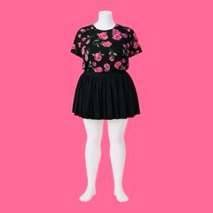 Torrid Black and Pink Floral Skirt Set