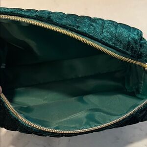 Elegant Green Velvet Cosmetic Bag Gold Zipper Pull