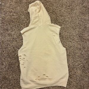 Cozy cream hoodie with adjustable drawstring. Soft and comfortable fabric.
