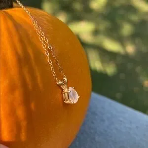 Beautiful and Dainty Small 14K Yellow Gold Montana Sapphire Pendant on Dainty 14K Chain. Pendant marked 14K Chain marked 585. This is a beautiful delicate piece for someone who loves dainty elegance! I was told by the original owner that the stone is a bicolored Montana Sapphire and it may have peach, purple and pink hues to it.. She said that these sapphires look different in different lighting. Since I didn’t have this appraised I can’t be certain if the stone is a Montana Sapphire and if the stone is natural or not or if it is something different. I feel the coloring is very light in person but you might feel differently The person I bought it from is very reputable but since I didn’t have it appraised I can’t guarantee anything. Please note though that colors may be off because of lighting and monitors used to view and measurements are rough approximate measurements. I feel some photos make it appear darker and more vibrant than it is. This is in used condition with signs of normal wear. Since it isn’t new and is used there may be imperfections.