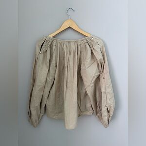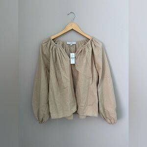 LOFT Blouse Womens XS Beige Split V-Neck Pullover Balloon Long Sleeve NWT