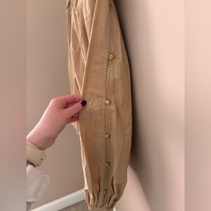 Keywords: LOFT blouse, XS top, beige blouse, tan blouse, split V neck, v neck blouse, balloon sleeve top, long sleeve blouse, button sleeve, pullover blouse, relaxed fit top, solid neutral top, workwear blouse, casual blouse, womens blouse