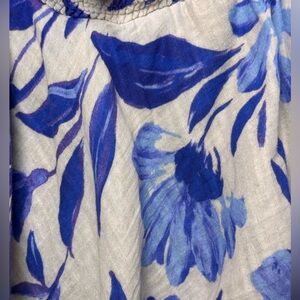 Anthropologie Floral One-Shoulder Tiered Dress Blue Plus Size 2X