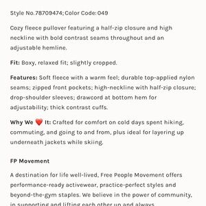 Free People Movement Mountain High Half Zip Fleece Size L NWOT
