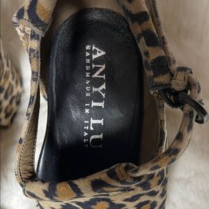 Anyi Lu is a luxury footwear brand founded by Anyi Lu in 2005, known for combining Italian craftsmanship with comfort technology. The Electra sandal represents the brand's philosophy of creating elegant yet comfortable footwear. These sandals are valued for their high-quality materials and ergonomic design that appeals to fashion-conscious professionals seeking both style and comfort. The leopard print pattern adds a timeless versatility that makes them suitable for both casual and dressier occasions.