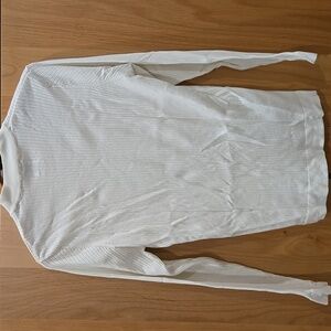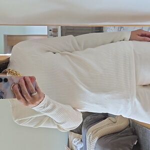 Zara Long Ribbed White Crewneck Top Soft Knit Essential I L, VGUC, Casual Chic