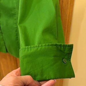 Vibrant green top by Worthington. Stretch fabric for a comfortable fit. French cuffs.