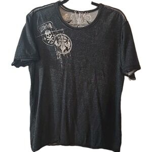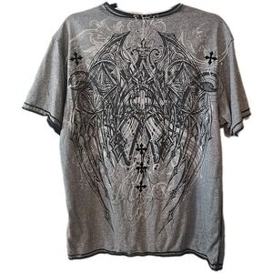 Affliction Graphic T-Shirt Size L Gray Double Sided Short Sleeve Y2K Distressed