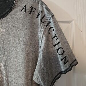 Affliction Graphic T-Shirt Gray Double Sided Short Sleeve Y2K Distressed