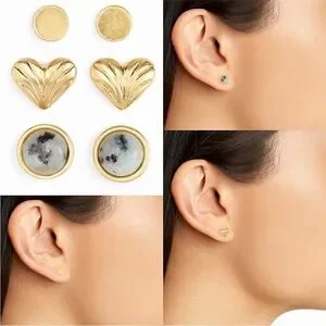 A set of three pairs of sweet stud earrings includes semiprecious stones and other lovely shapes for you to mix and match to your heart's content.
