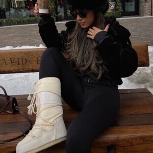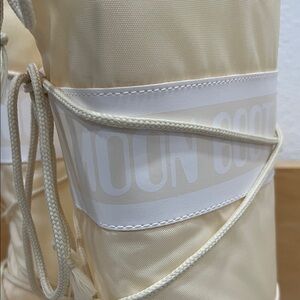 Stay cozy and stylish in these beige Moon Boot winter boots. Ideal for cold weather.