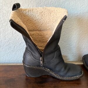 UGG Shearling Lined Leather Mid Calf Boots Cozy Cabin Winter - US 6
