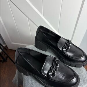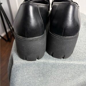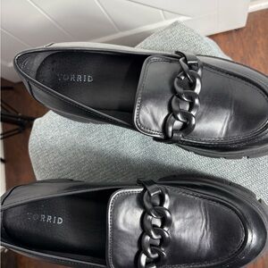 Torrid Chunky Platform Log Sole Penny Loafers Black Faux Leather. Perfect for any occasion, they offer both comfort and elegance.