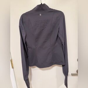 Stylish purple/gray jersey top. Features a full zip and high collar. Perfect for active wear.