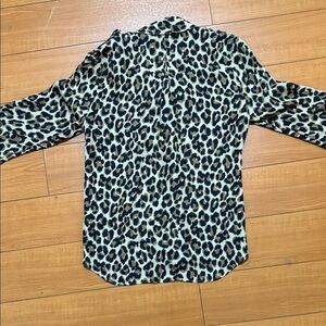 Stylish leopard print button-up shirt. Features a classic collar and long sleeves. Gold Buttons.