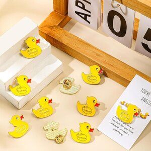 Features: Cute and sturdy yellow duck brooches made of metal with a lovely metallic shine. Each pin measures around 0.79 to 0.98 inches wide, perfect for adding a playful touch to outfits or accessories. Complete with cheerful, inspirational cards to boost morale. Comes with organza gift bags for easy gifting.
