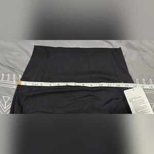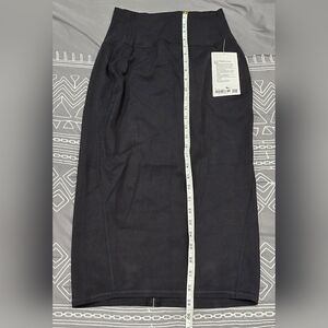 Brand new with tags. Size 6. High waisted. About a 4.5 inch thick waistband. Slim fit. Midi style. All black. Slit on lower middle of the Skirt. Logo on upper back of waistband. Measurements and fabric content listed above in pictures.