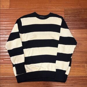 Brandy Melville Black and Cream Striped Crewneck Sweater