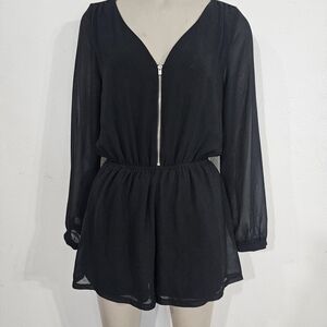 Express Chiffon Women's Short Romper Sheer Size XS Long Sleeves Black