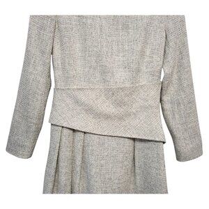 Polished, tailored, and quietly luxurious — this Camelot dress is crafted from soft, light-catching white tweed sourced from one of Italy’s finest mills. The fit-and-flare silhouette is designed to flatter, featuring a contoured wrapped waistline, pleated skirt, and practical in-seam pockets. Finished with a signature exposed gold-tone back zipper for a clean, modern look. An excellent piece for work events, conferences, weddings, or elevated daytime occasions.