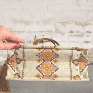 Wrangler NWOT Canvas & Leather Aztec Print Satchel or Crossbody Bag