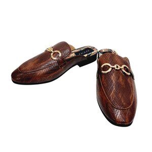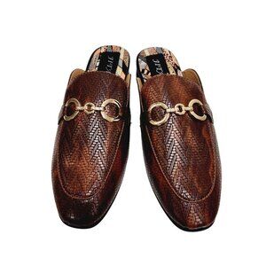 Jitai Womens Brown Slip-On Loafers With Gold Buckle Accent Size 8 Faux Leather