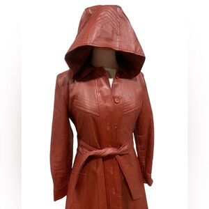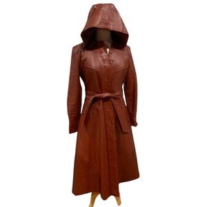 Vntg 70’s napskin trench coat with hood and belt