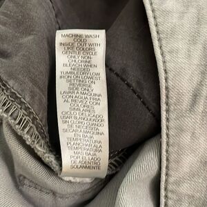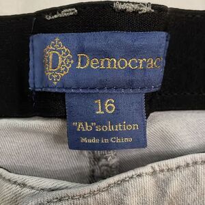 Ab Solution, light grey, 67% cotton, 19% polyester, 4% other, 1% spandex, denim, ankle, cropped jeans with a frayed hem by Democracy in a women's size 16. Button fly. 5-Pocket design. Machine washable. Approximate measurements shown in photos. In good pre-owned condition with some signs of wear from normal use.
