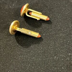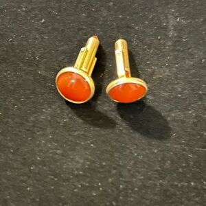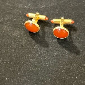 Add a touch of sophistication to your attire with these elegant gold and orange cufflinks. Perfect for any formal occasion.