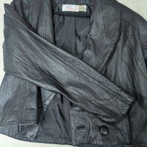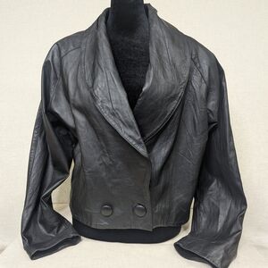 Vintage 80s Avon Fashions Black Leather Cropped Jacket - Mob Wife Blazer SZ M