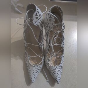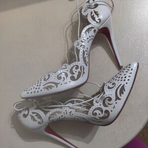 Christian Louboutin Sylvieta Lasercut White Lace-Up Heels US6.5 37
