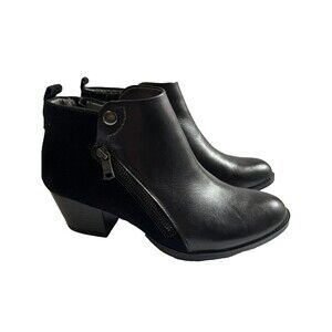 Earth Women’s Conway Maple Black Leather Multi-Zip Ankle Boots Sz 9M