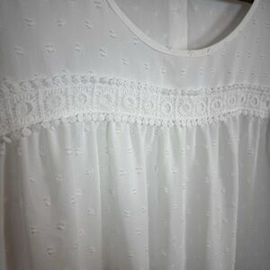 Shein Curve Womens 3X Swiss Dot Peasant Cottage Core Blouse White
