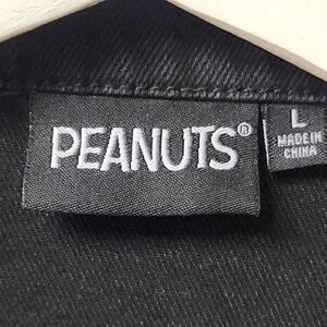 PEANUTS Snoopy "When Do We Eat?" Black Denim Trucker Jacket - Size Large