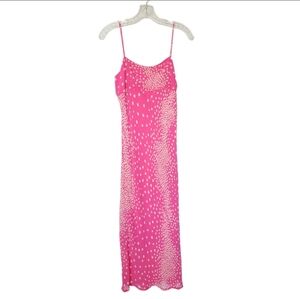 WANTED Hot Pink Polka Dot Midi Slip Dress - Vintage 90s Style Size Medium