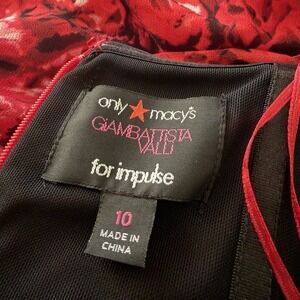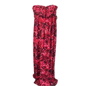 Giambattista Valli for Impulse Strapless Floral Maxi Dress Red Black Bow Front Formal Evening Gown