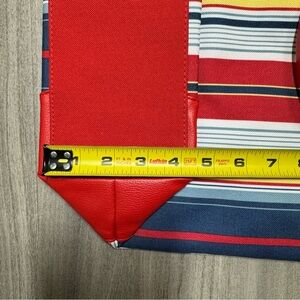 Lancôme tote bag magnetic closure red with multi color stripe design