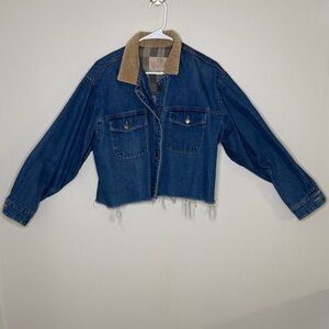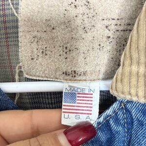 Made in USA Denim Jacket Corduroy Collar Cuffs Women’s Large Cropped Size L