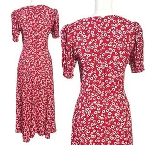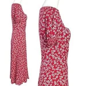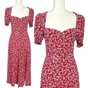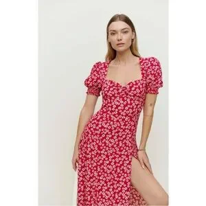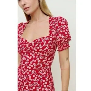 Reformation Lacey Smocked Sleeve Dress in Jenna Red Floral Size 4