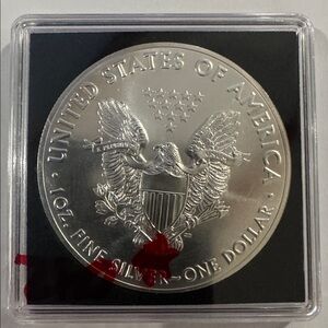This 2015 American Silver Eagle was minted at the West Point Mint in West Point, New York.