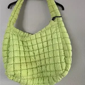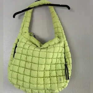FREE PEOPLE MOVEMENT Quilted Tote / Hobo Bag Pale Neon Green Y2K Athleisure Core