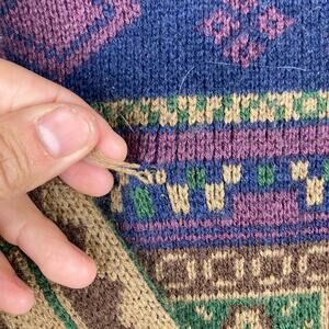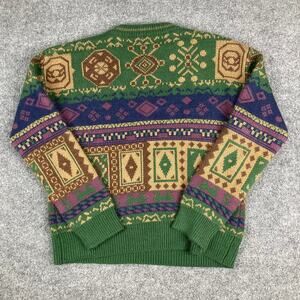 ROMWE Sweater Womens Small Green Multicolor Aztec Print Knit Crewneck
