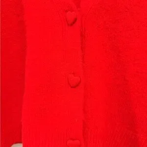 Cupcakes & Cashmere Red V-Neck Cardigan with Heart Shaped Buttons