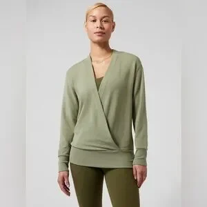 Athleta Purana V Neck Wrap Sweatshirt Eucalyptus Olive Green Size L